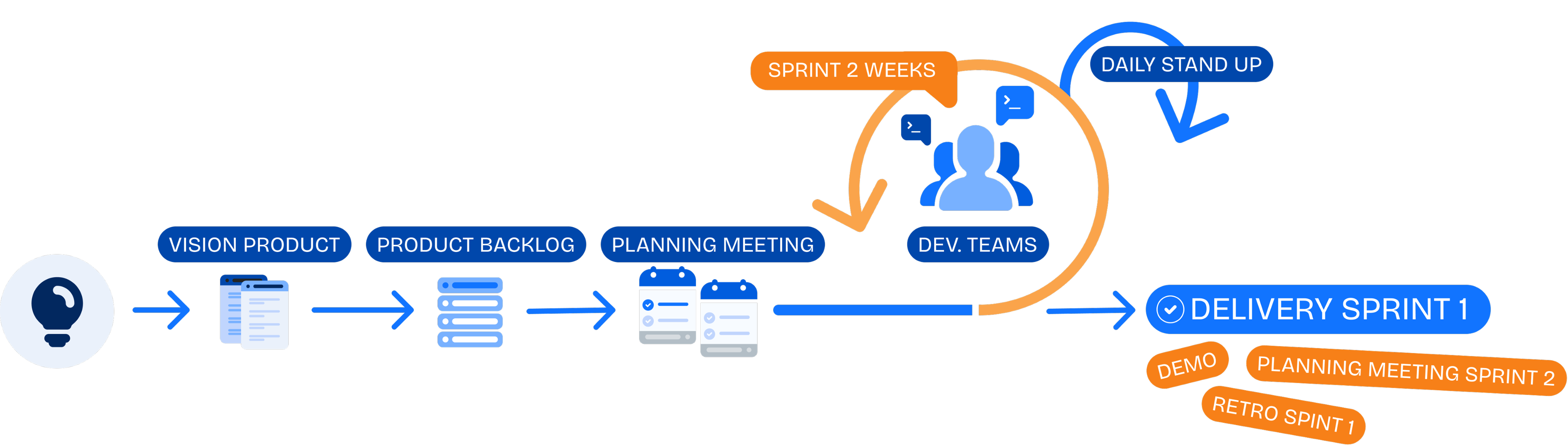 We follow an agile development methodology to ensure flexibility, transparency, and continuous improvement throughout the software lifecycle. Our process is structured around sprint-based iterations, enabling rapid development, constant feedback loops, and seamless collaboration between teams.